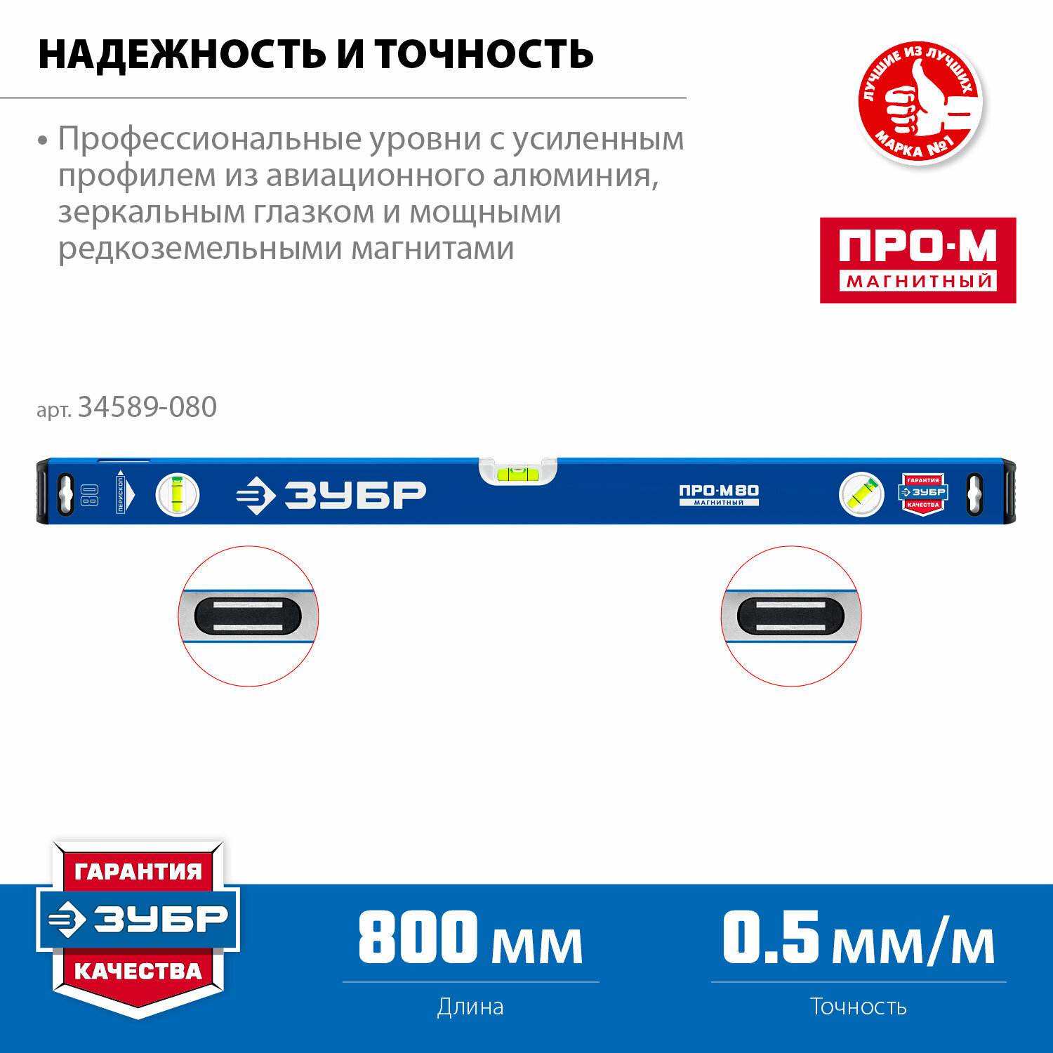 Усиленный магнитный уровень, ЗУБР ПРО-М, 800 мм, 34589-080_z01