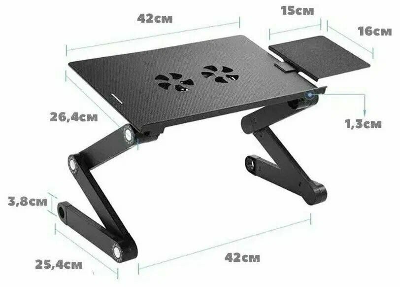 Столик для ноутбука трансформер T8 с охлаждением и подставкой для мышки