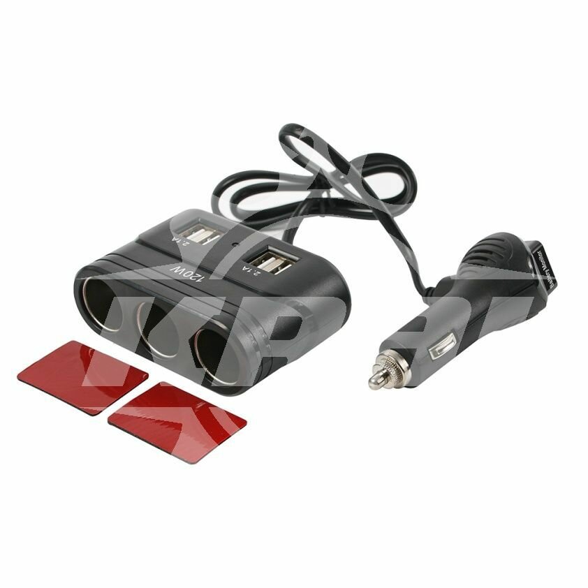 Купить Разветвитель прикуривателя 12/24В 4 USB, 3 разъема, с проводом (NO 1680)