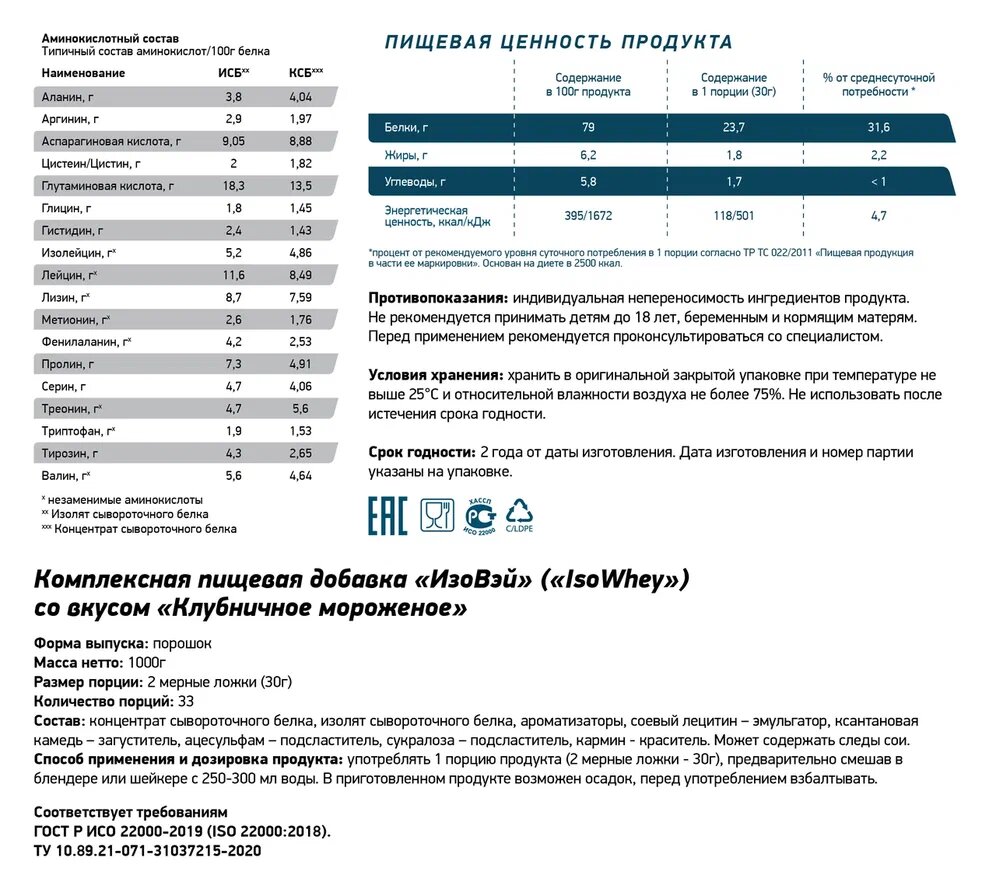 Изолят ISO WHEY 1000 g Клубничное мороженое ДС