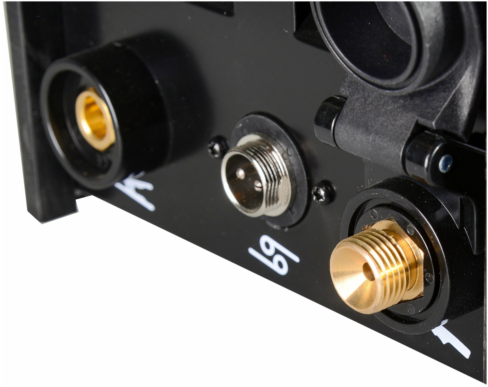 | Плюсы: | На передней панели манометр с отображением рабочих параметров. Плавная регулировка сварочного тока. Защита от перегрева. |