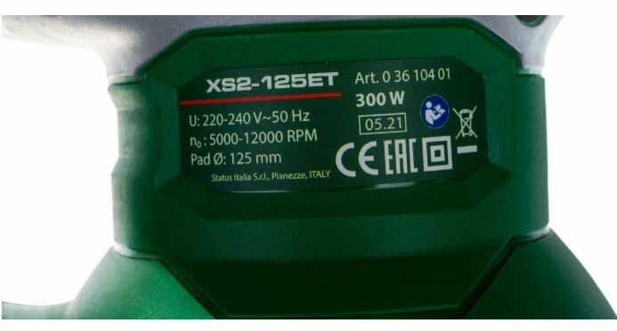 Шлифовальная машина d125мм, 300ВТ XS2-125ET STATUS 03610401 STATUS 03610401
