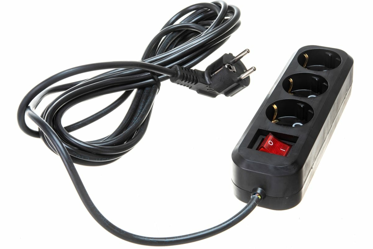 Бытовой удлинитель атлант ПВС 3х0,75 ГОСТ 3500Вт 3 гнезда 5м с выключателем 80019