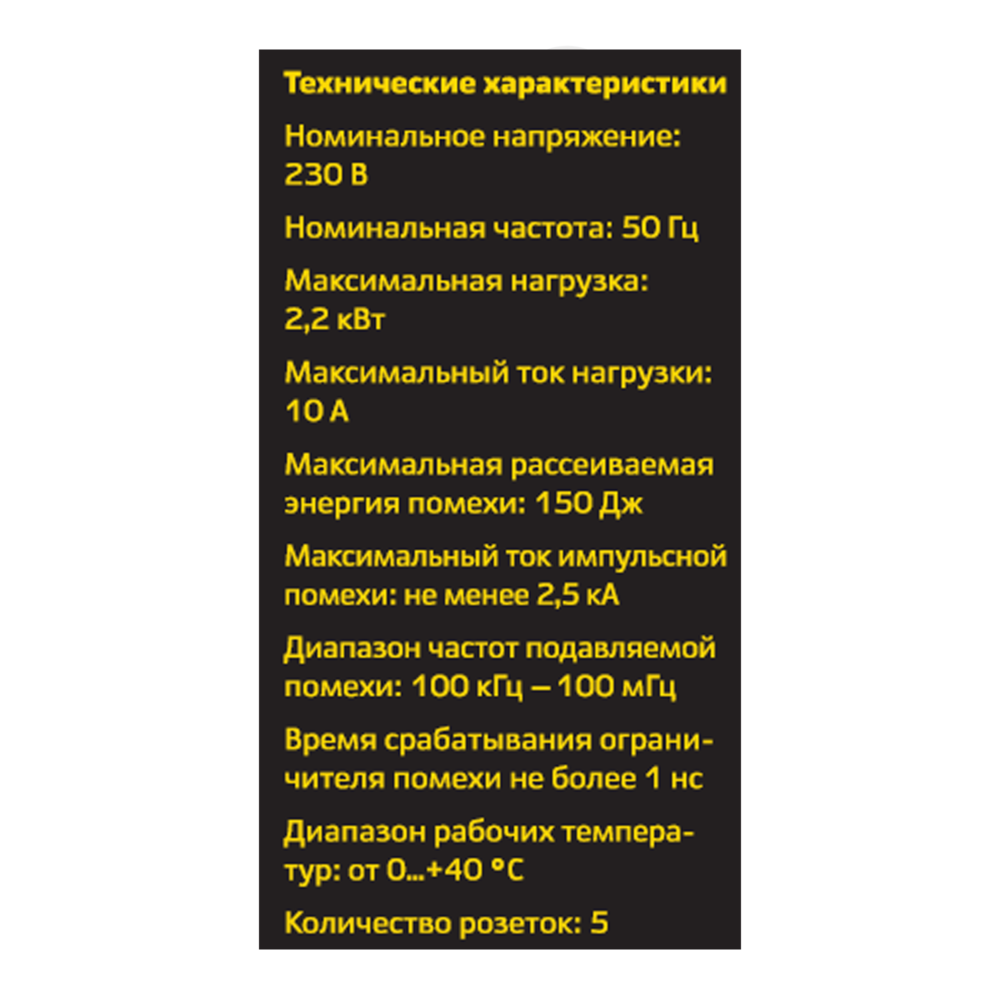 | Количество розеток | 5 |