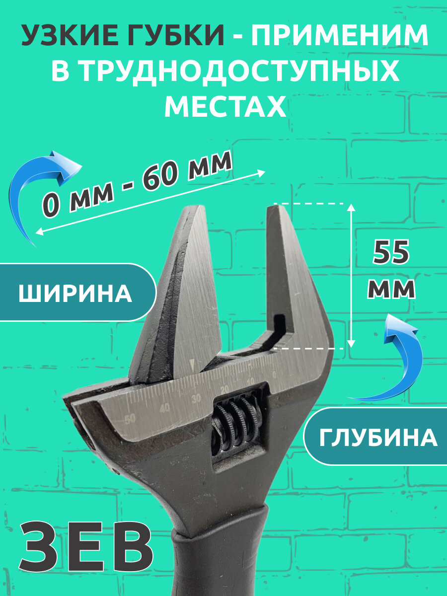 Разводной сантехнический ключ с тонкими губками 12" 60 мм ширина захвата интересное: