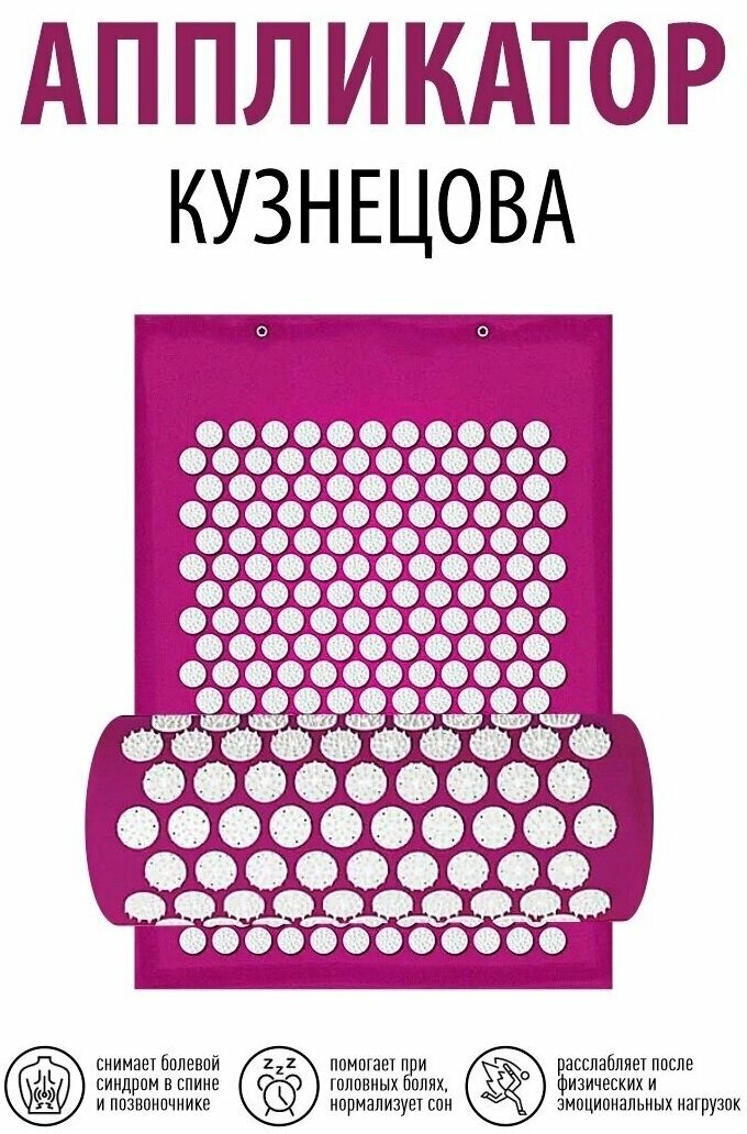 Аппликатор Кузнецова: Массажный набор акупунктурный игольчатый коврик + валик, малиновый. Сделано в России!