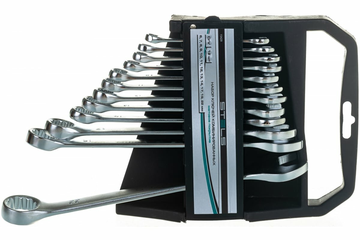 Набор ключей комбинированных, 6-22 мм, 12 шт, CrV, матовый хром Stels (15429)
