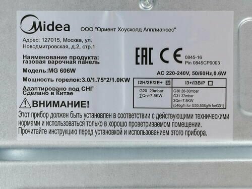 MIDEA MG606W независимая газовая поверхность .