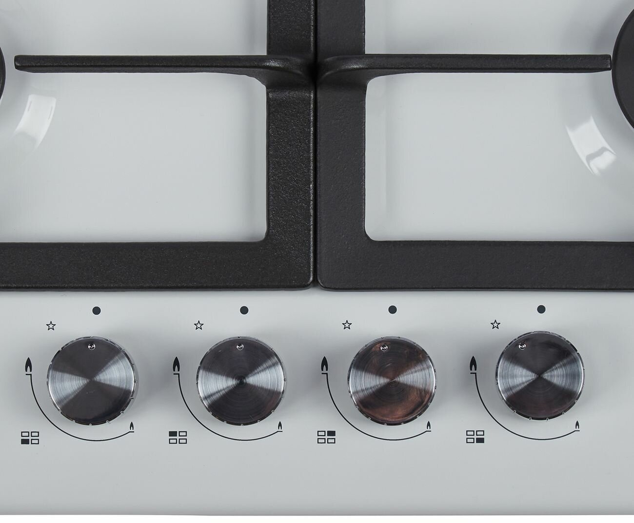 Поверхность газовая независимая Midea MG606W, 4 конфорки, решетки чугунные, цвет белый металл, газ-контроль