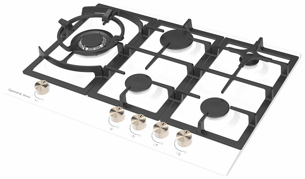 Варочная панель газ. Zigmund&Shtain G 14.7 W / бел 5 конф решётки чугун Турция