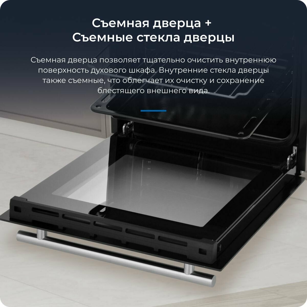 | Отзыв: | Указано, что дверку и внутреннее стекло можно снять, чтобы помыть духовку изнутри. Пока этого не делали, так как не так давно пользуемся шкафом. |