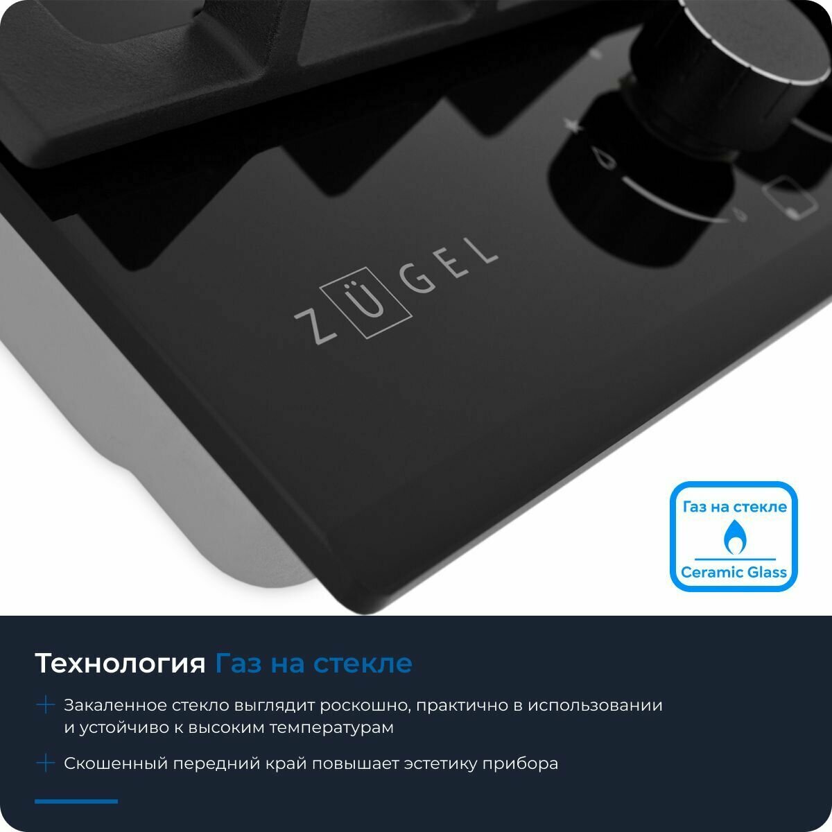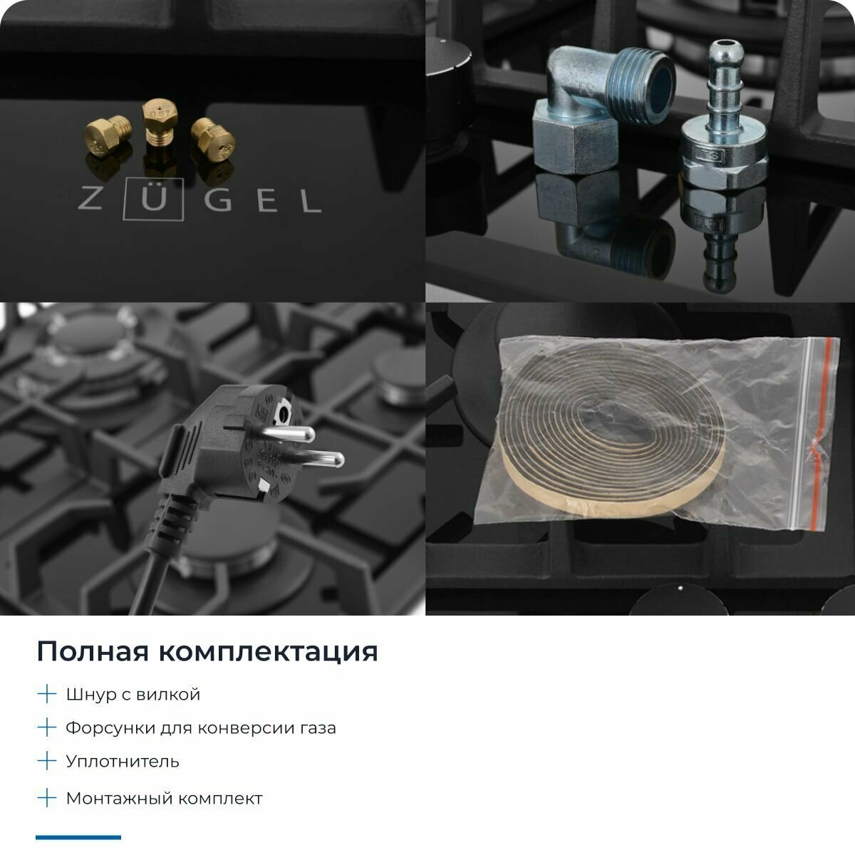 Встраиваемая газовая варочная панель ZUGEL ZGH451B черная