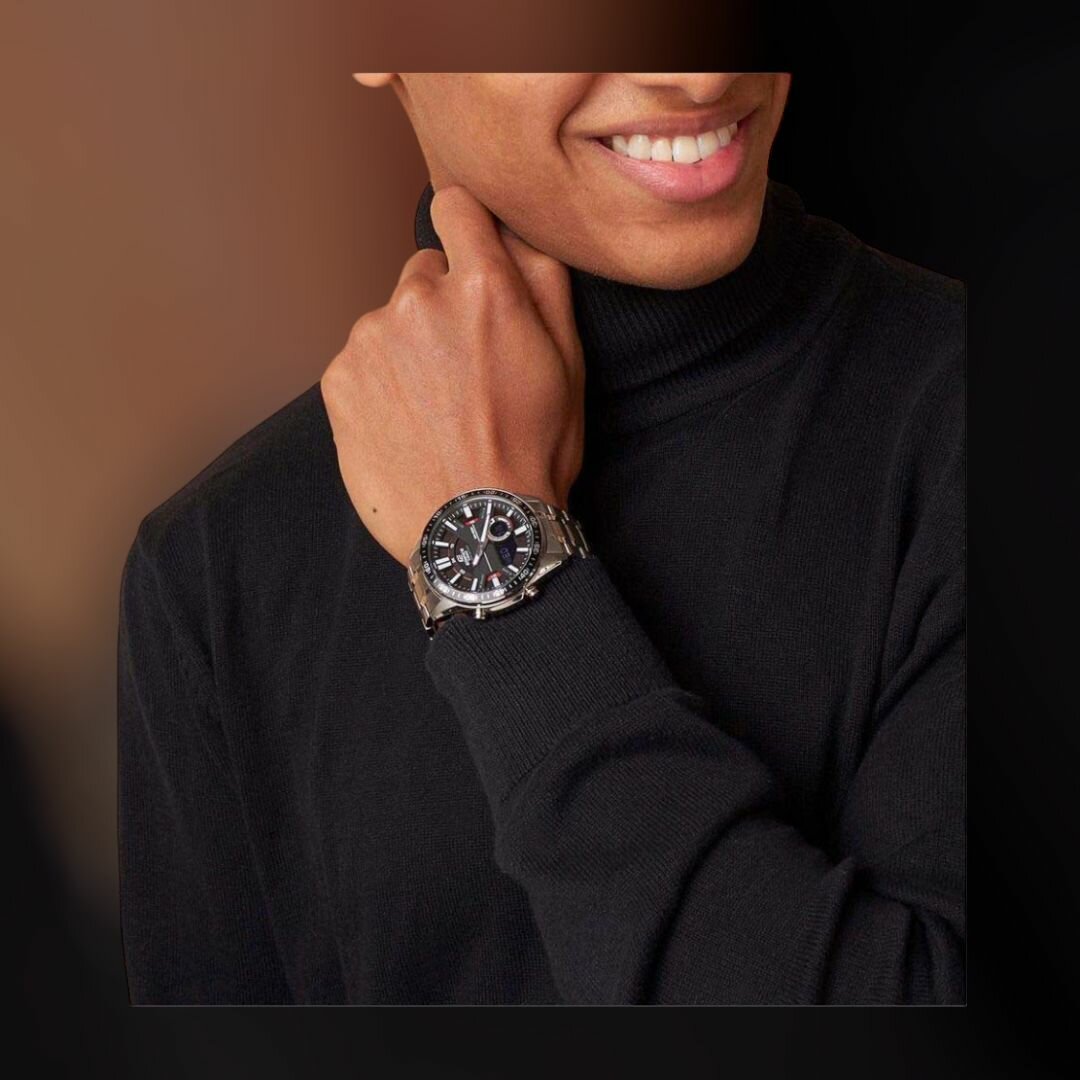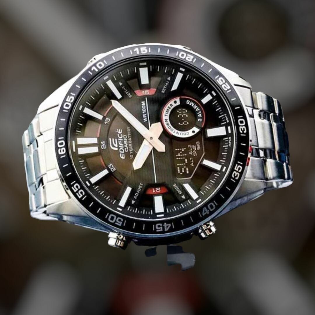 EFR-571DC-1A Casio наручные часы кварцевые WR100 (10 атм) мужские черный отображение числа подсветка стрелок минеральное стекло