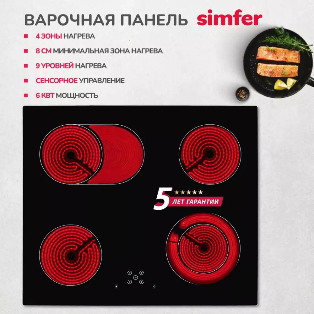 Электрическая стеклокерамическая варочная поверхность Simfer / H60D17B015