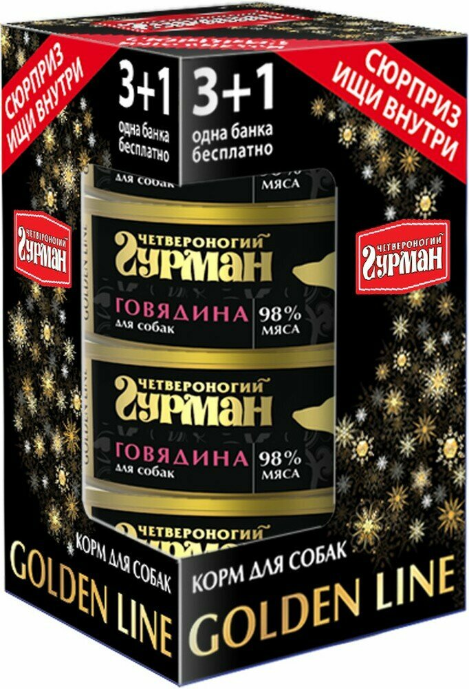 Купить Четвероногий Гурман Golden line Консервы для собак Говядина 4шт х 100г