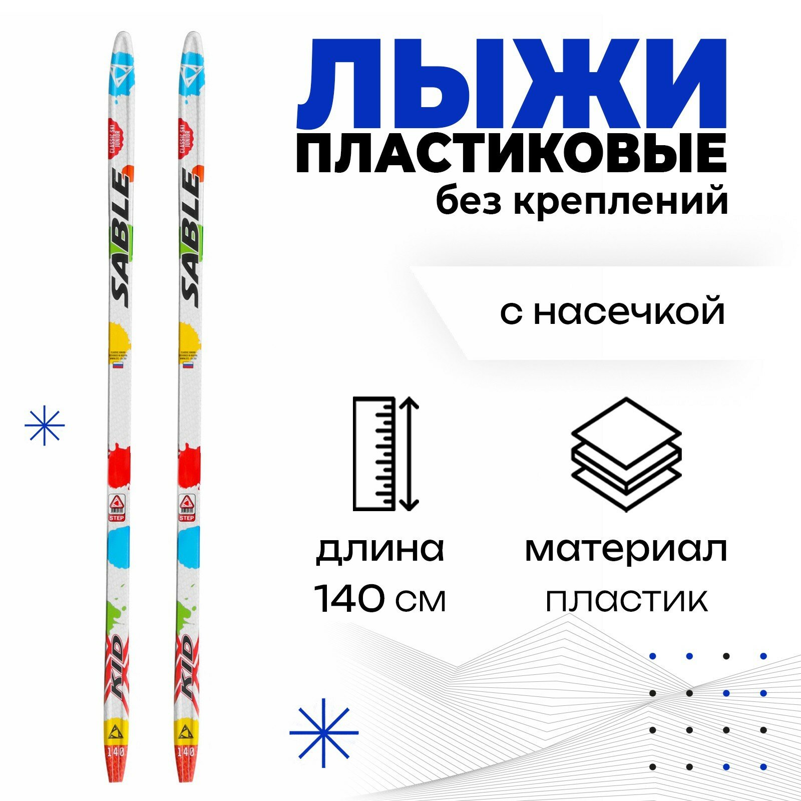 Лыжи пластиковые «бренд ЦСТ» step, 140 см, без креплений, с насечкой, цвета микс