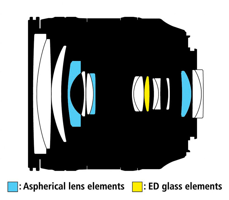 | Дополнительная информация | угол зрения на зеркальных фотокамерах Nikon формата DX 18.5-61 градусов, на системах фотокамер IX240: 22.5-71 градус |