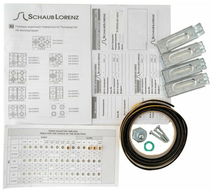 Газовая варочная панель Schaub Lorenz SLK GL6511, белое стекло, WOK конфорка, автоматический электроподжиг, газ-контроль, чугунная решетка, комплект жиклеров для баллонного газа