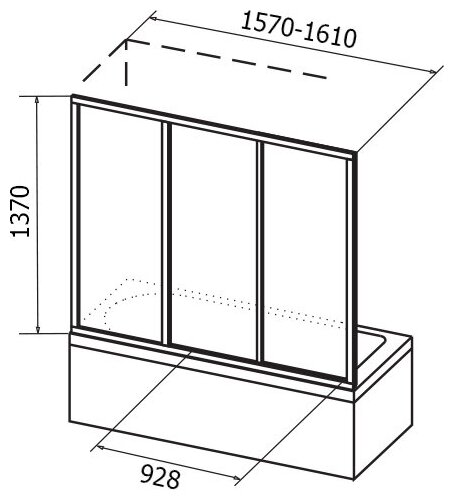 Шторка на ванну Aquanet Practic AE10-B-165H150U-CP, прозрачное стекло