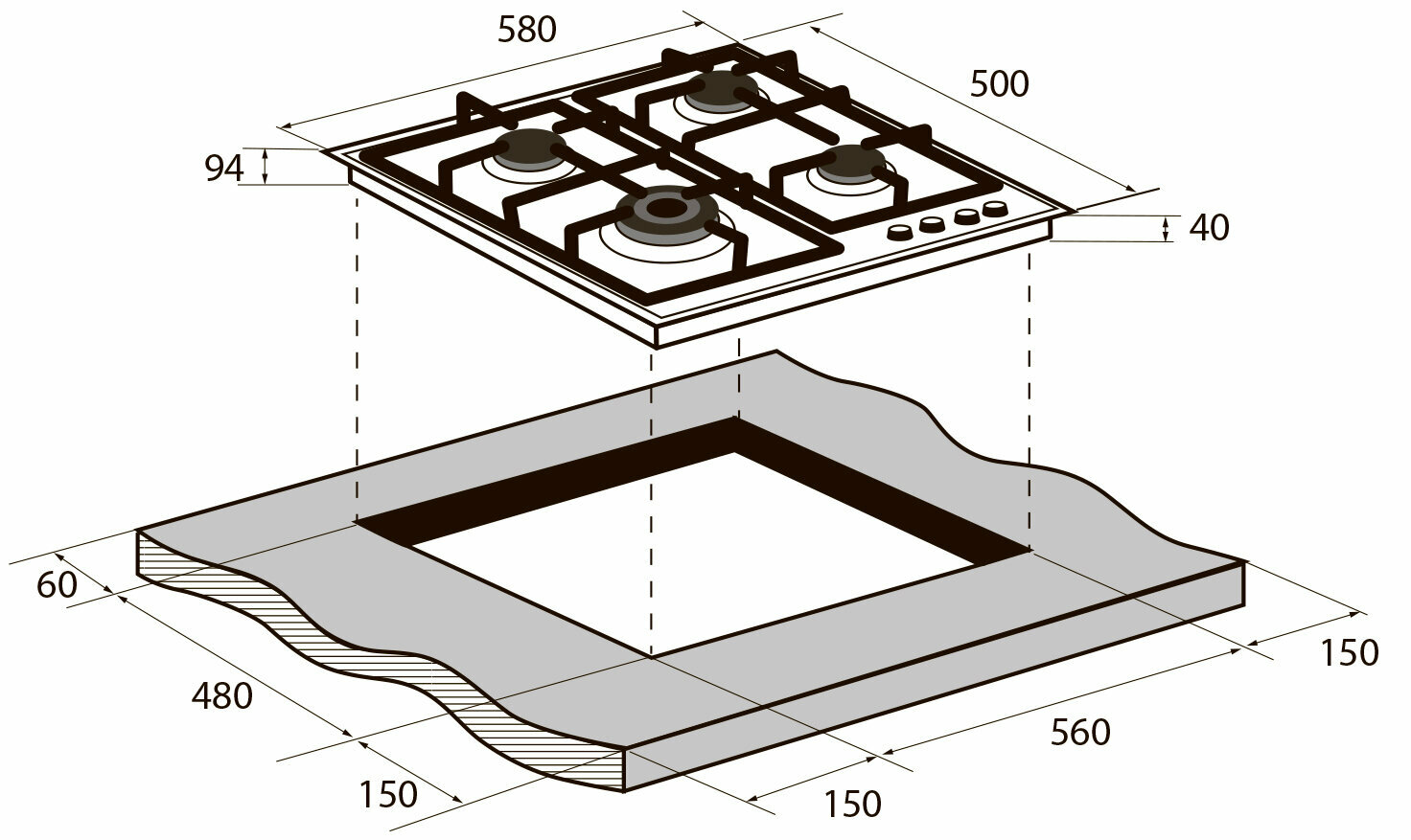 | Минусы: | Моментально покрывается царапинами. Малая конфорка свистит. Будем вызывать газовщиков, а это опять деньги |