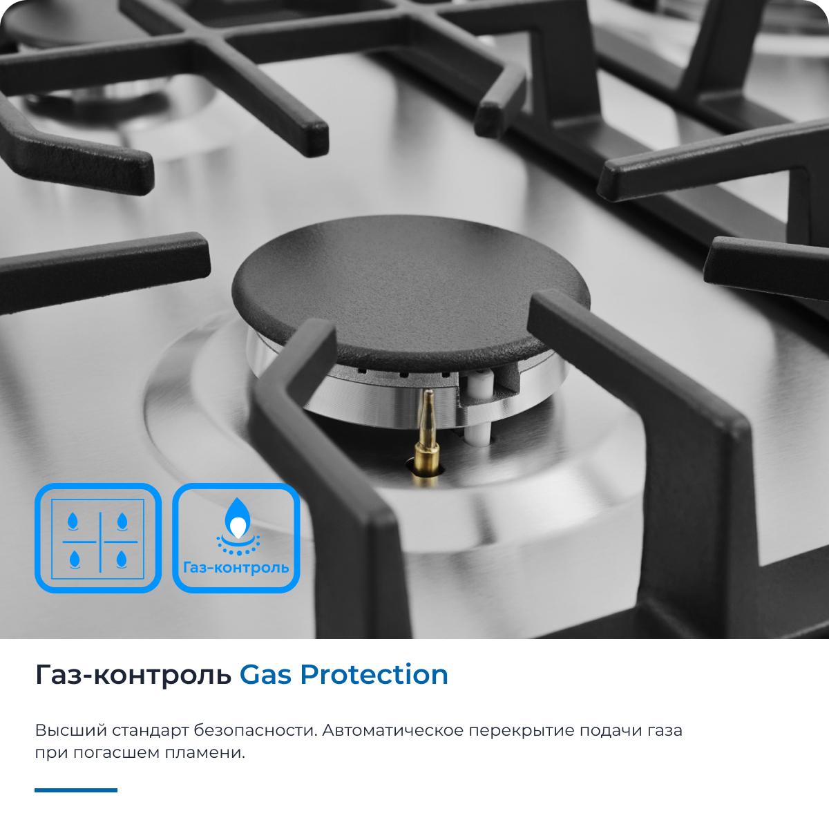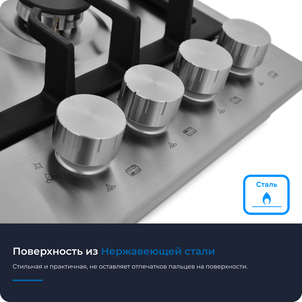 Встраиваемая газовая варочная панель ZUGEL ZGH601X, стальная
