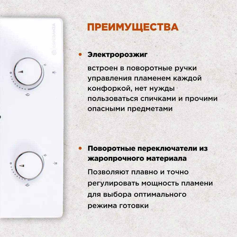 Газовая варочная поверхность ESPERANZA HG2S5 W, белый интересное:
