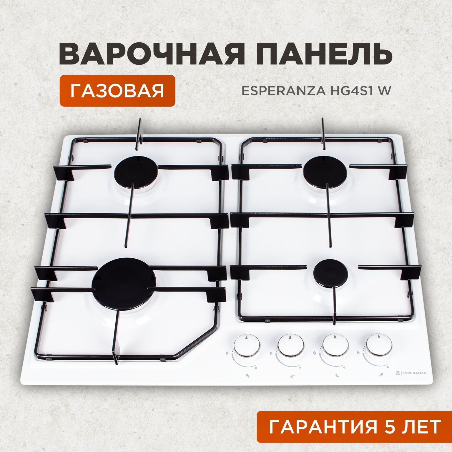 Газовая варочная поверхность ESPERANZA HG4S1 W белая эмаль. стальные решетки