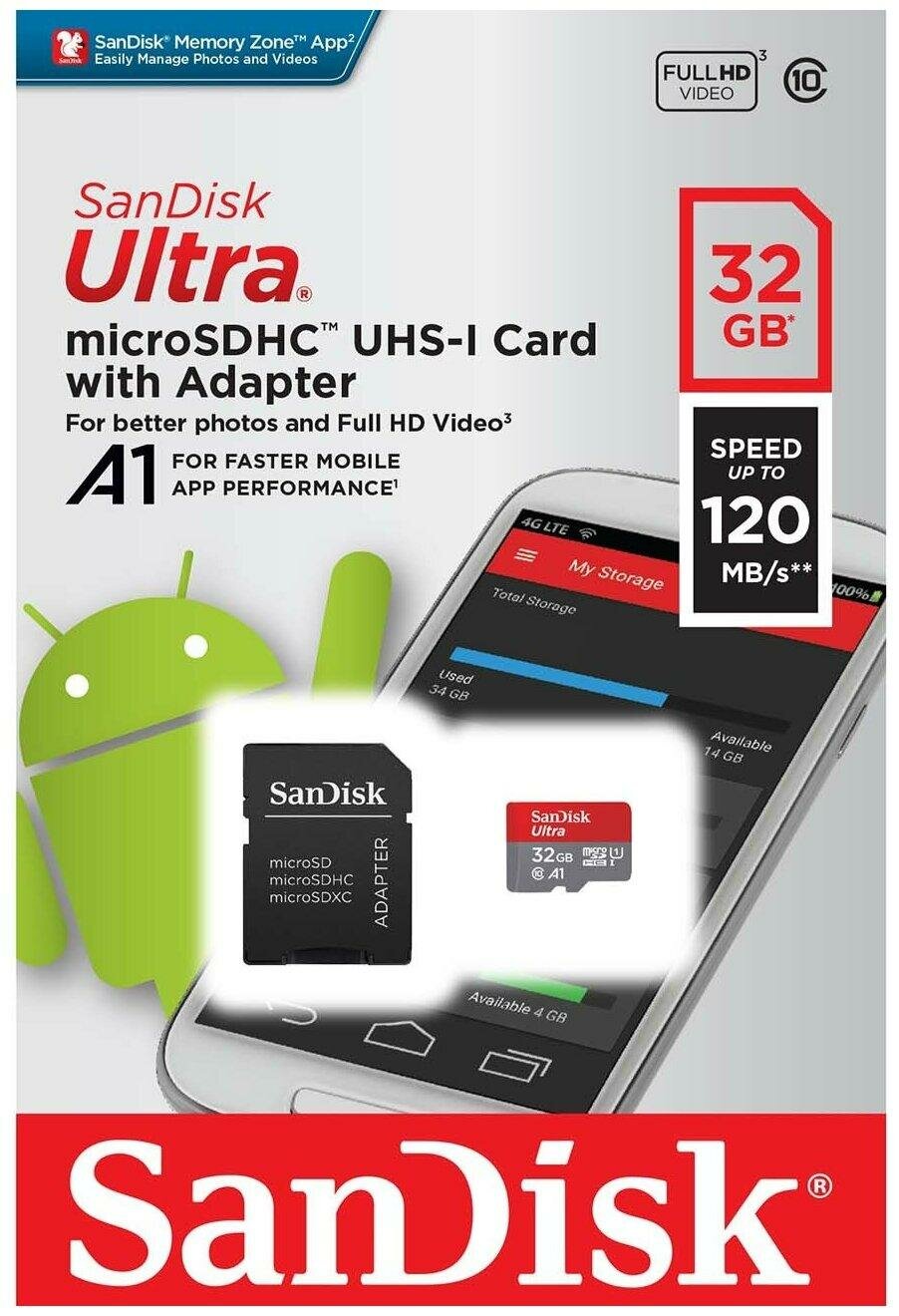 Купить Карта памяти microSDHC SanDisk 32Gb Ultra 120MB/s SDSQUA4-032G-GN6MA, 1шт.
