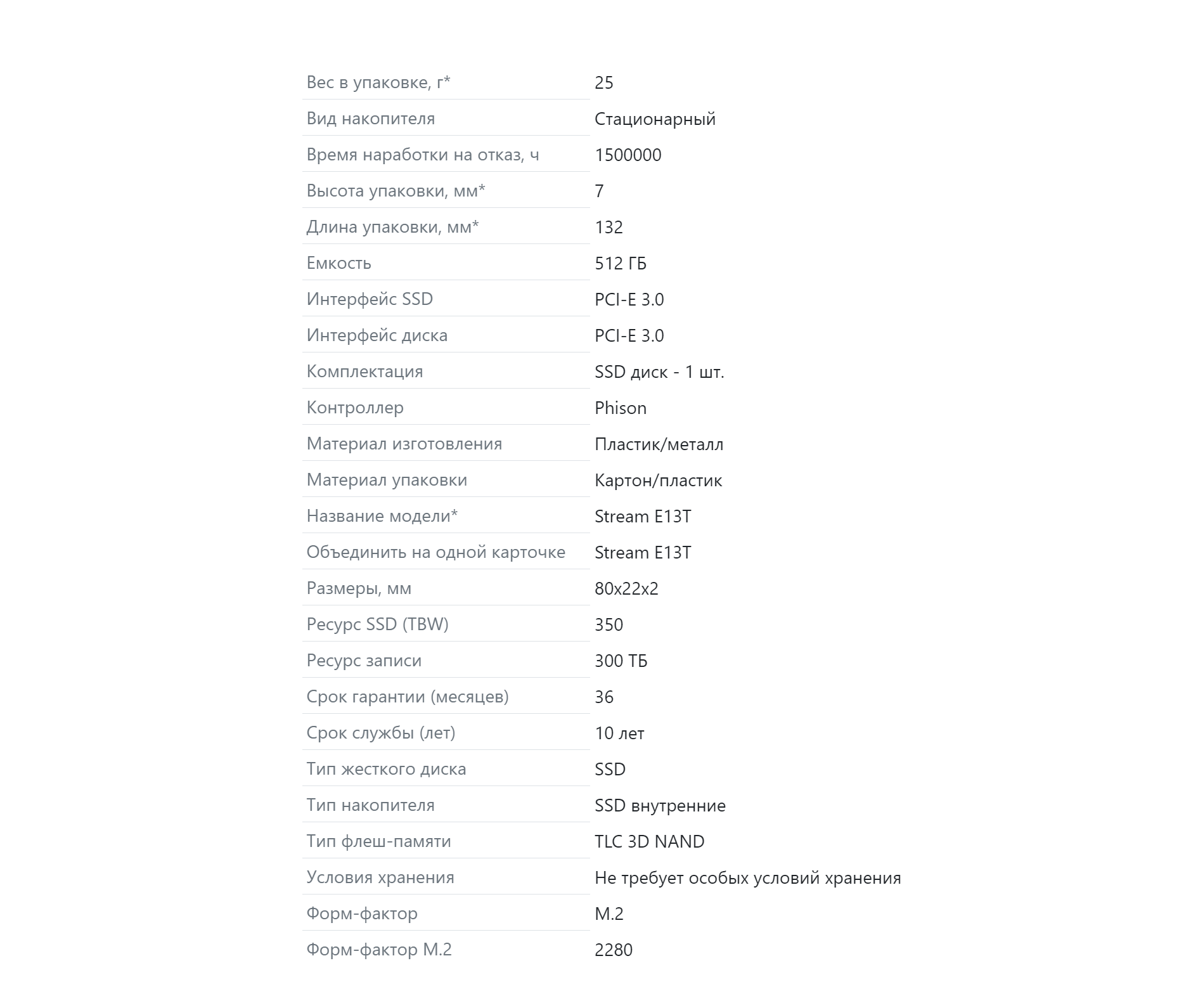 Накопитель SSD Smartbuy Stream E13T 512GB M.2 2280 PCIe Gen3 x4, NVMe 1.3 интересное: