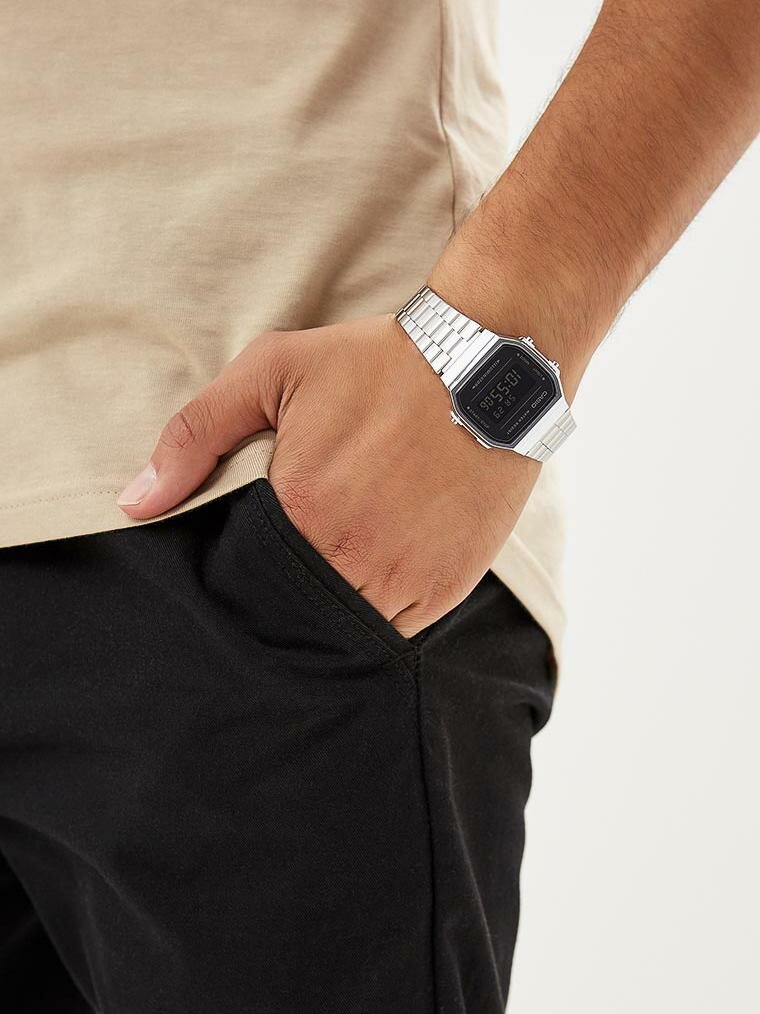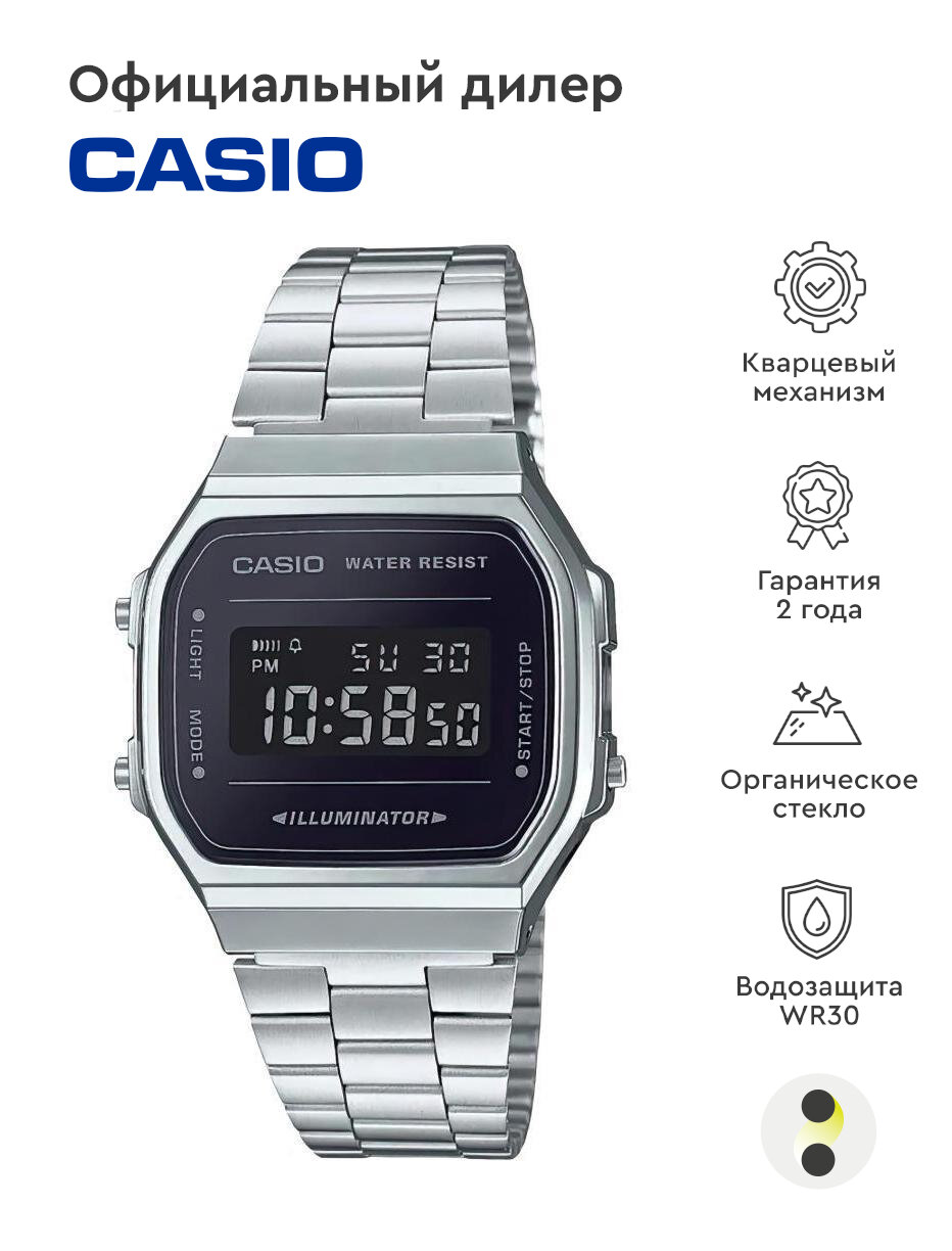 Наручные часы CASIO Vintage A168WEM-1D, серебряный, черный