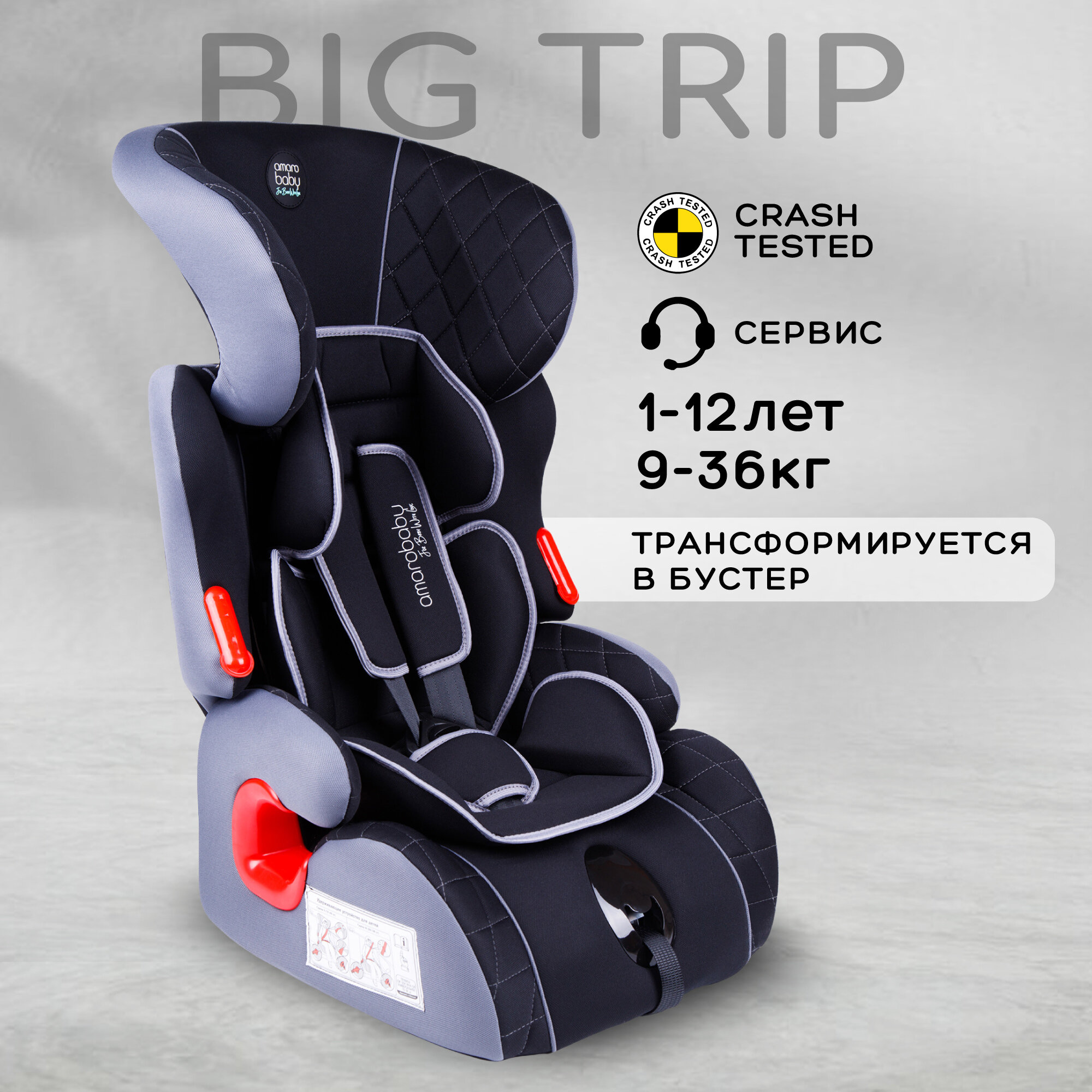 Автокресло AmaroBaby Big trip группа I/II/III чёрный/серый (AB212006BTChS/09)