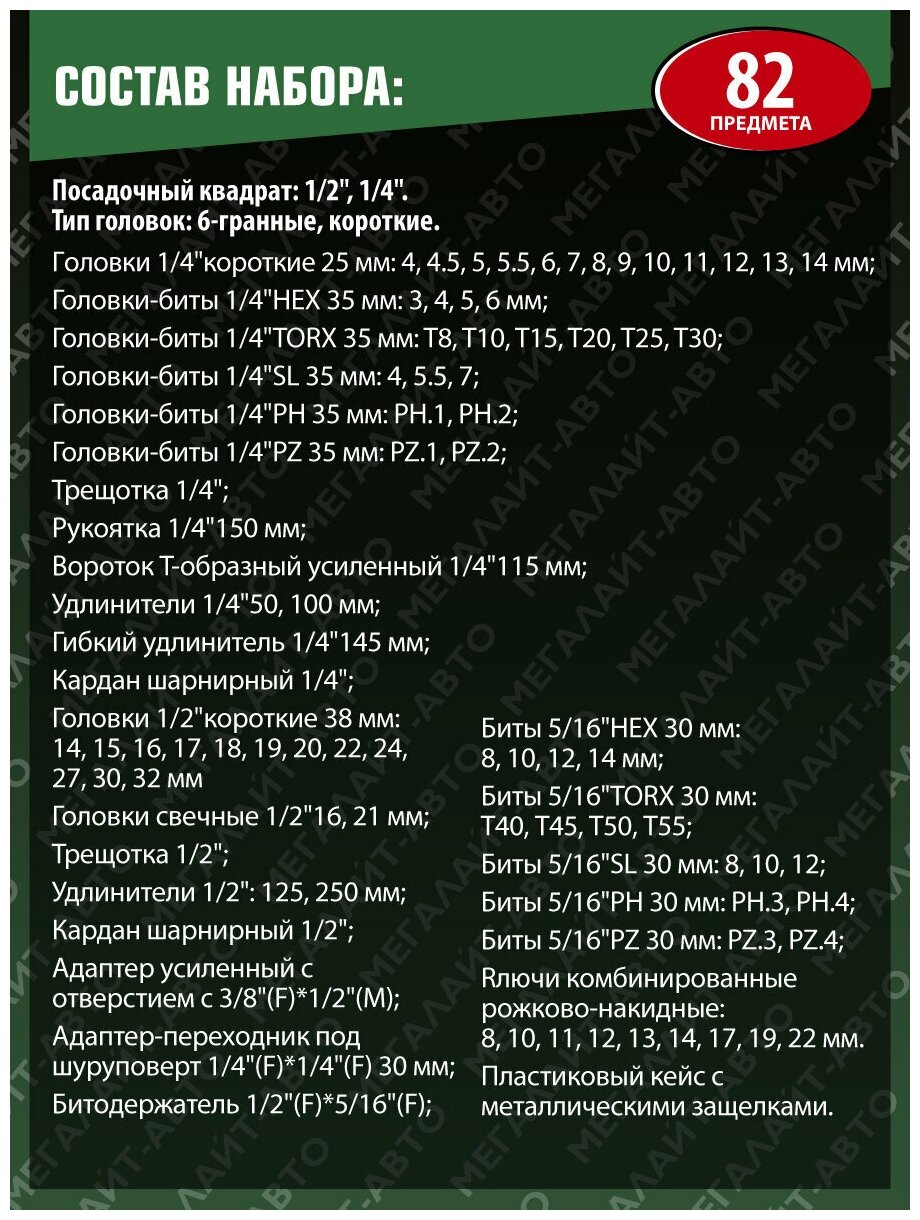 Набор инструмента ROCKFORCE 1/2 и 1/4DR 6-гранный 82 предметов RF-4821-5