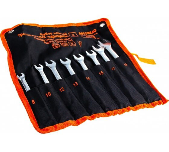 Набор ключей рожково-накидных 8 шт Автодело (трещоточные, шарнирные, 8 предметов, 8-19 мм) тетроновая сумка