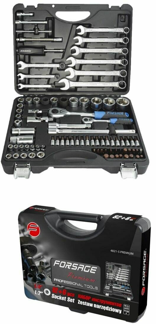 Набор инструментов Forsage F-4821-5 PREMIUM, 82+6 предм. 1/2", 1/4"