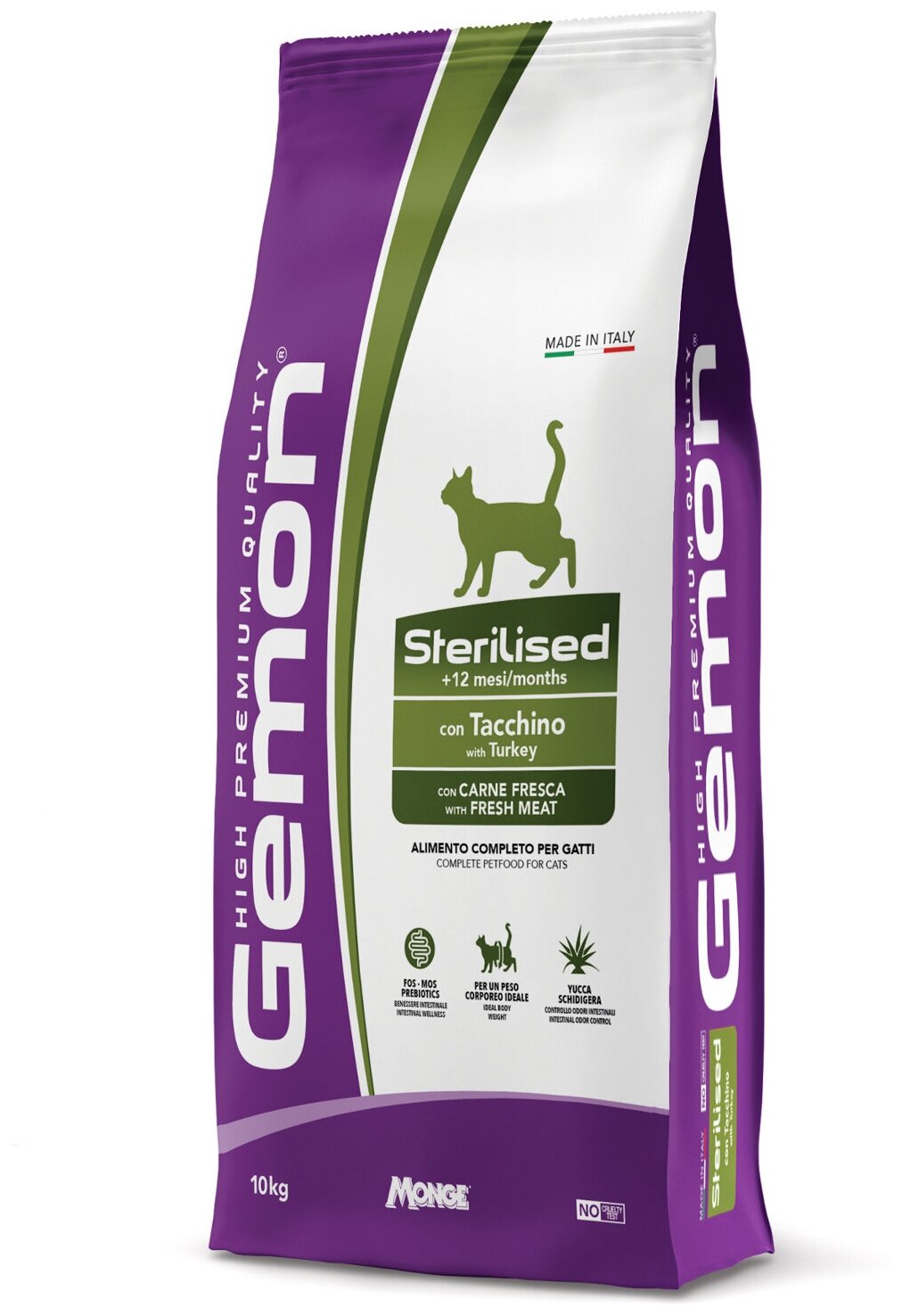 GEMON CAT STERILISED для взрослых кастрированных котов и стерилизованных кошек с индейкой (10 кг)