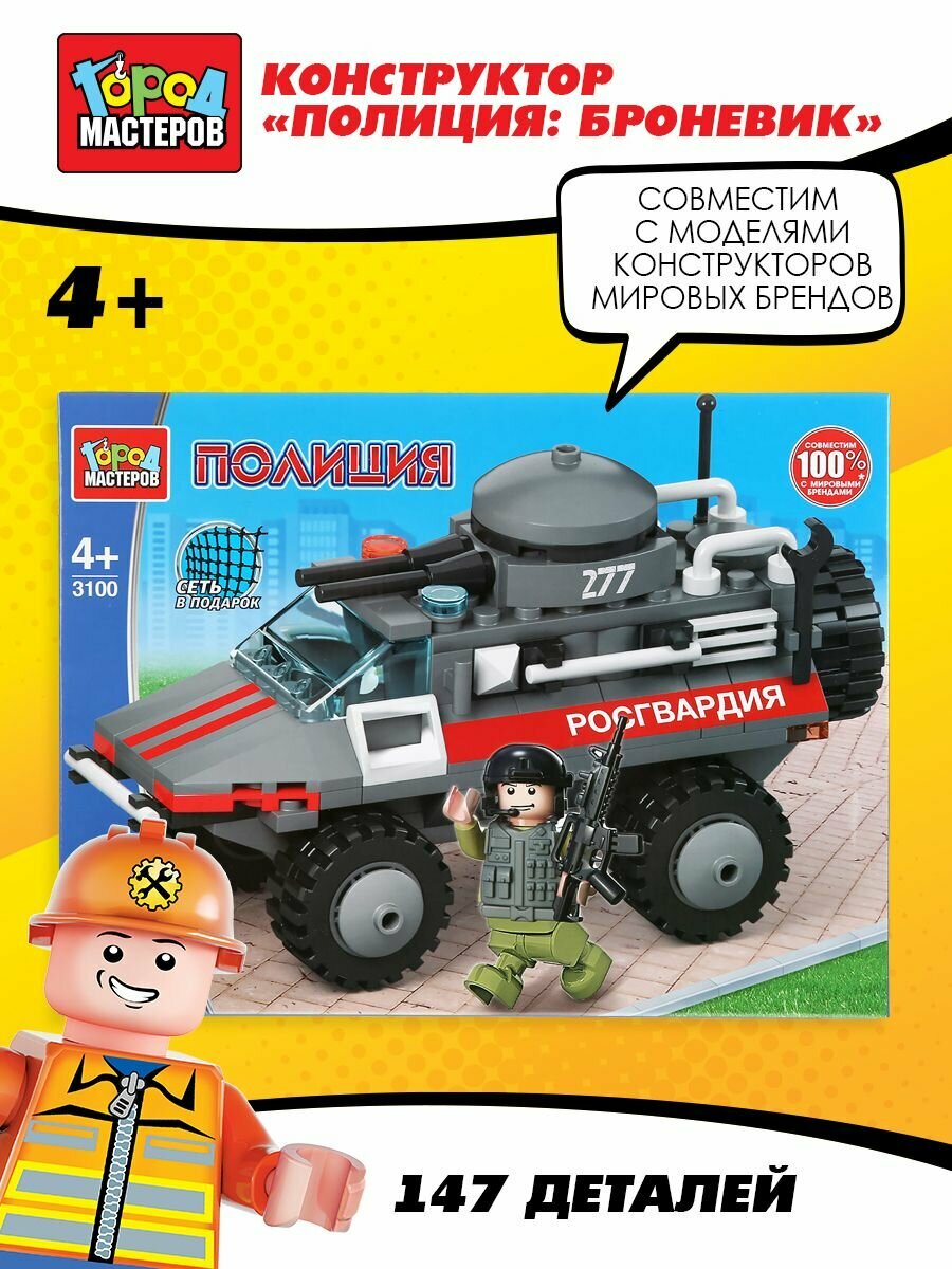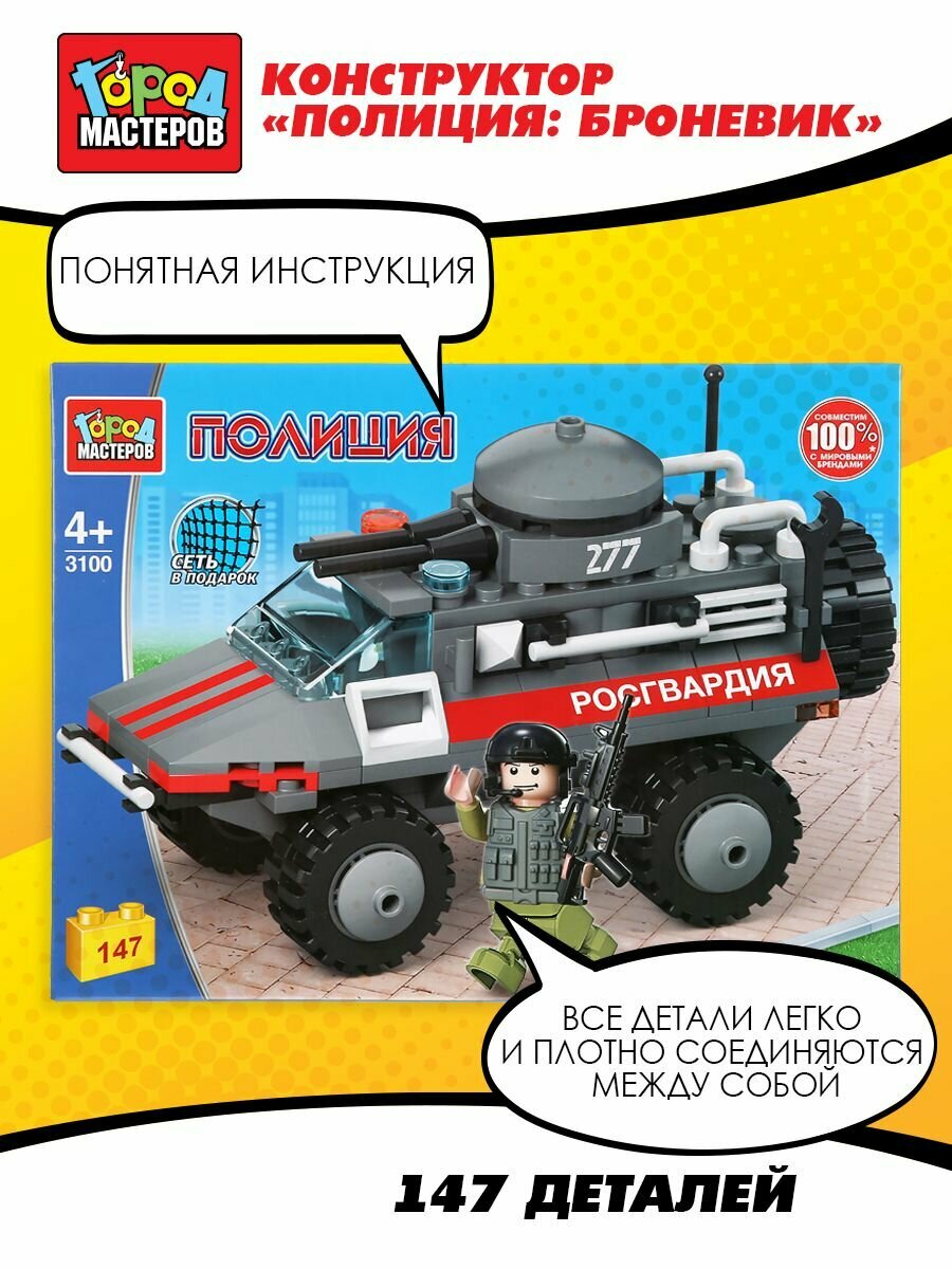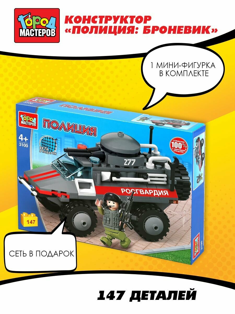 Конструктор броневик росгвардии, с фигуркой, 147 дет. Город мастеров 3100-SL