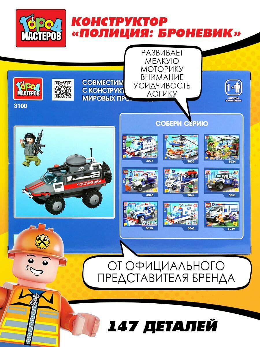 Конструктор броневик росгвардии серия полиция 147 деталей город мастеров 3100-SL