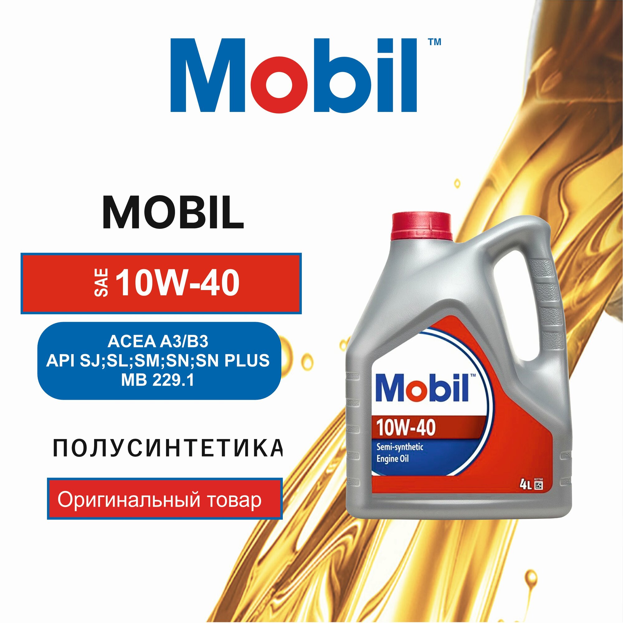 Полусинтетическое моторное масло MOBIL 10W-40, 4 л, 3.8 кг, 1 шт