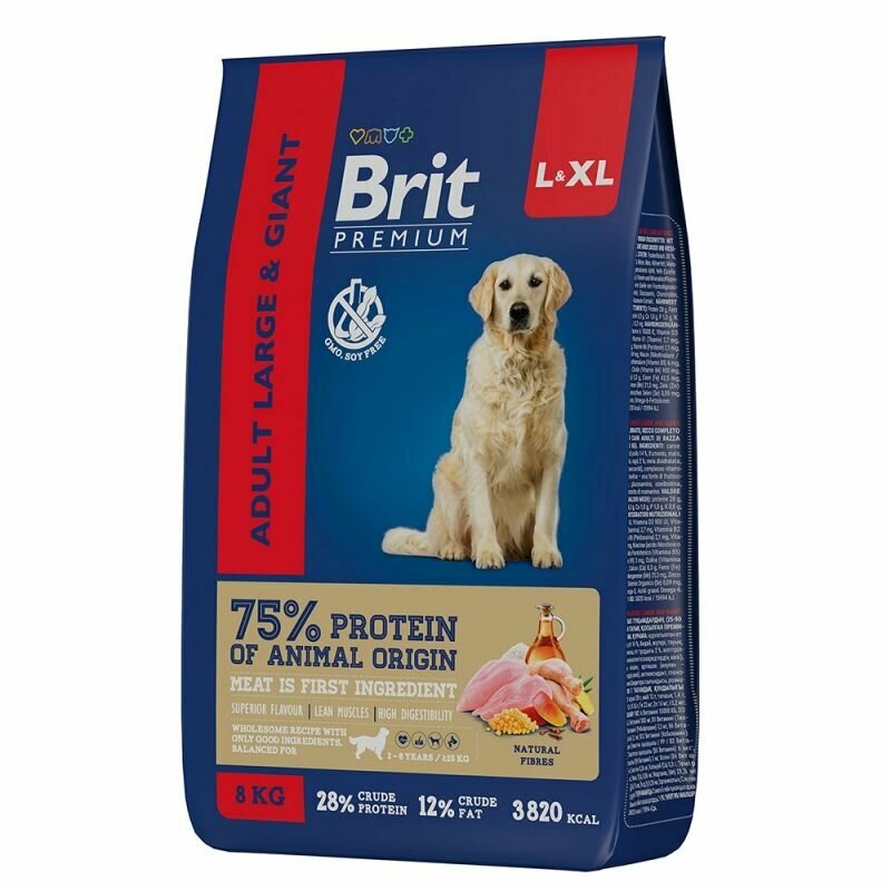 Сухой корм BRIT PREMIUM DOG ADULT LARGE & GIANT для взрослых собак крупных и гигантских пород с курицей (8 кг)