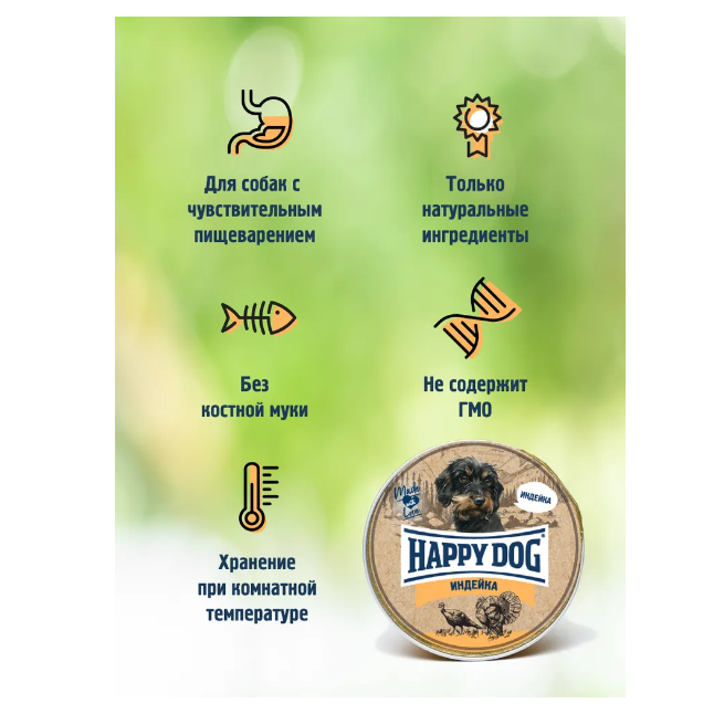 Happy Dog Паштет для собак с Индейкой, 125г 0.125 кг