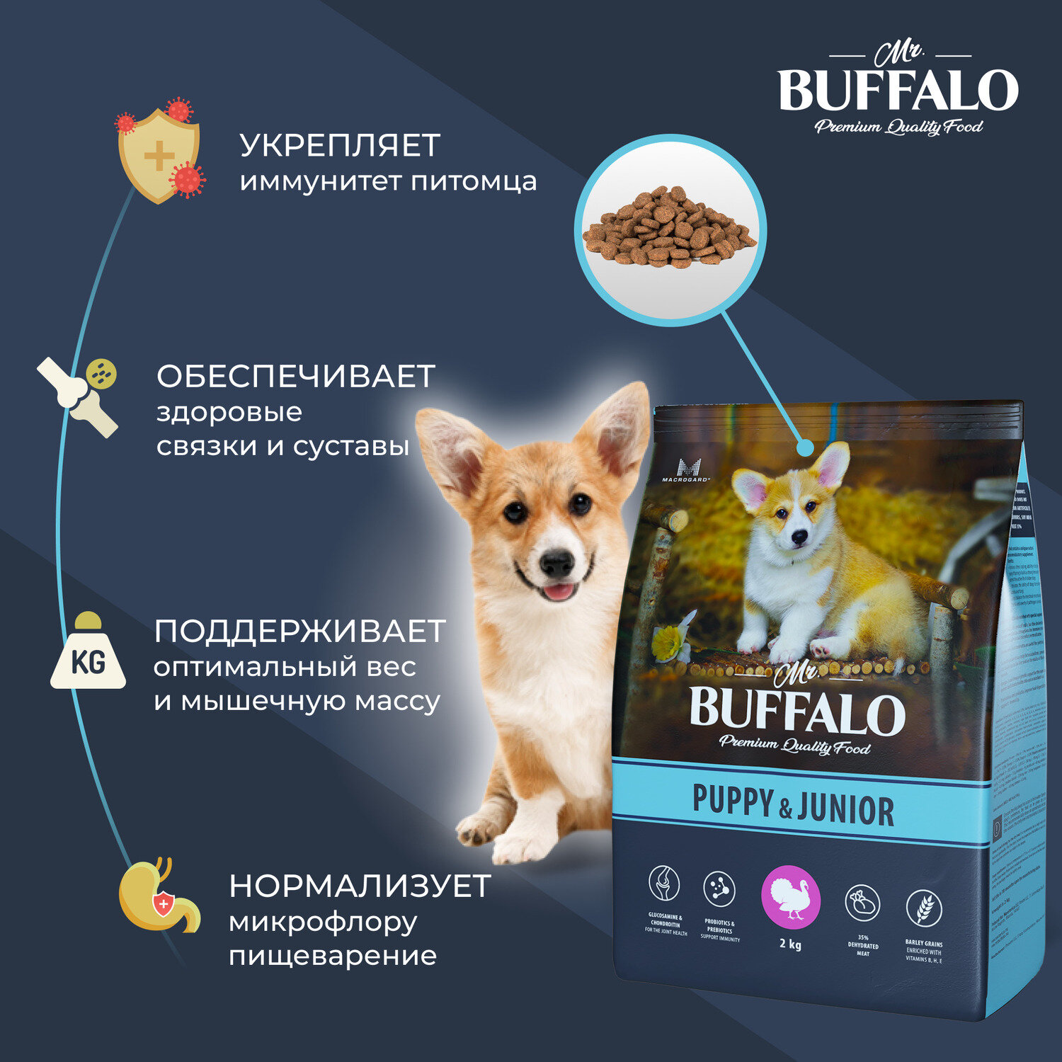 Сухой корм Mr.Buffalo PUPPY & JUNIOR для щенков и юниоров с индейкой 2кг