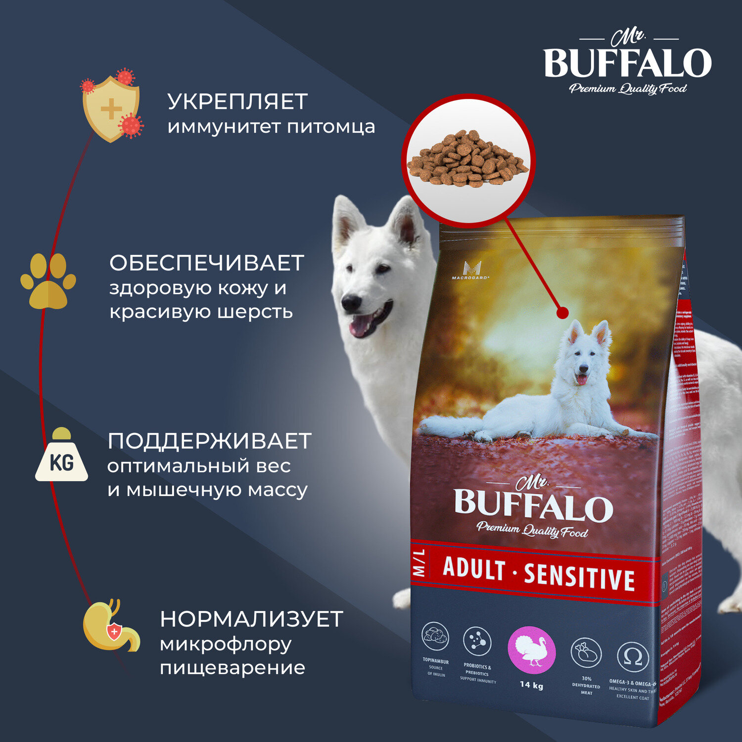 Корм сухой для собак Mr.buffalo ADULT M/L SENSITIVE для собак средних и крупных пород, индейка, 14кг