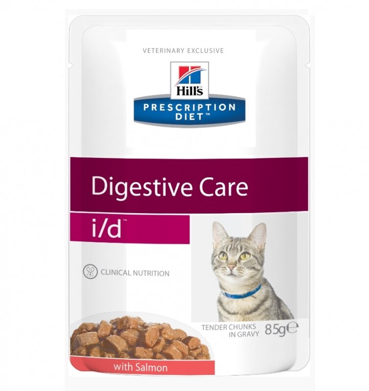 Корм для кошек Hill's Prescription Diet Feline I/D при заболеваниях ЖКТ, лосось пауч 85г (упаковка - 12 шт)
