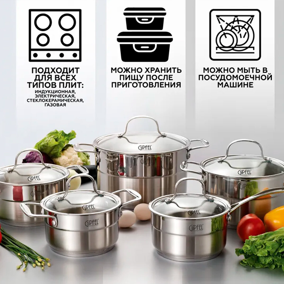 | Плюсы: | Давно пользуюсь кастрюлькой GIPFEL GALA 1,8 л. Мне ее подарили. Очень нравится! Решила заказать побольше объем. Нержавейка 18/10. Кастрюльки вечные! Думаю, что лучше приобрести пусть и подороже, но хорошего качества, как эта. Мне еще очень нравится дизайн этой серии. |