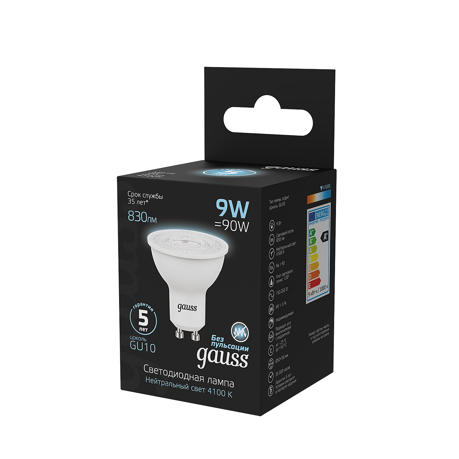 Лампа светодиодная gauss 101506209, GU10, 9 Вт, 4100 К