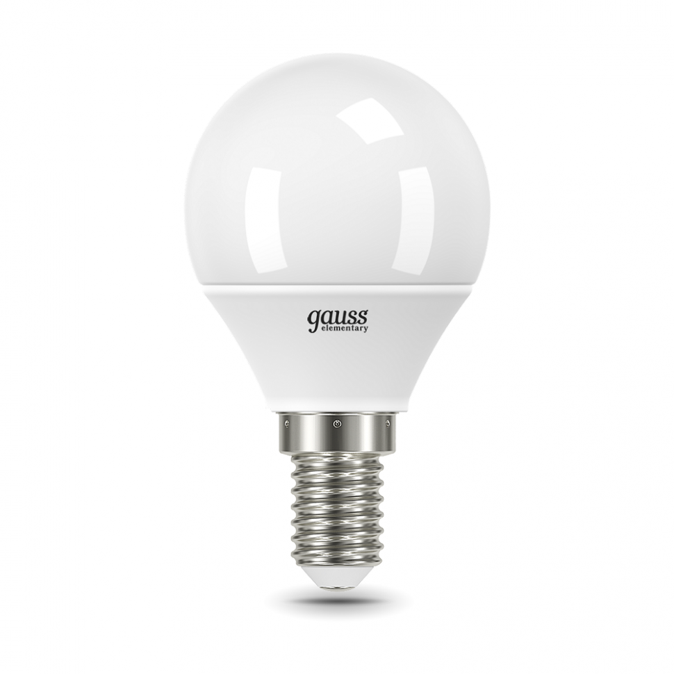 Gauss Elementary Шар G45 E14 8W(520lm) 3000K 2K 82x45 матовая, пластик/алюм. 53118 (арт. 613249)