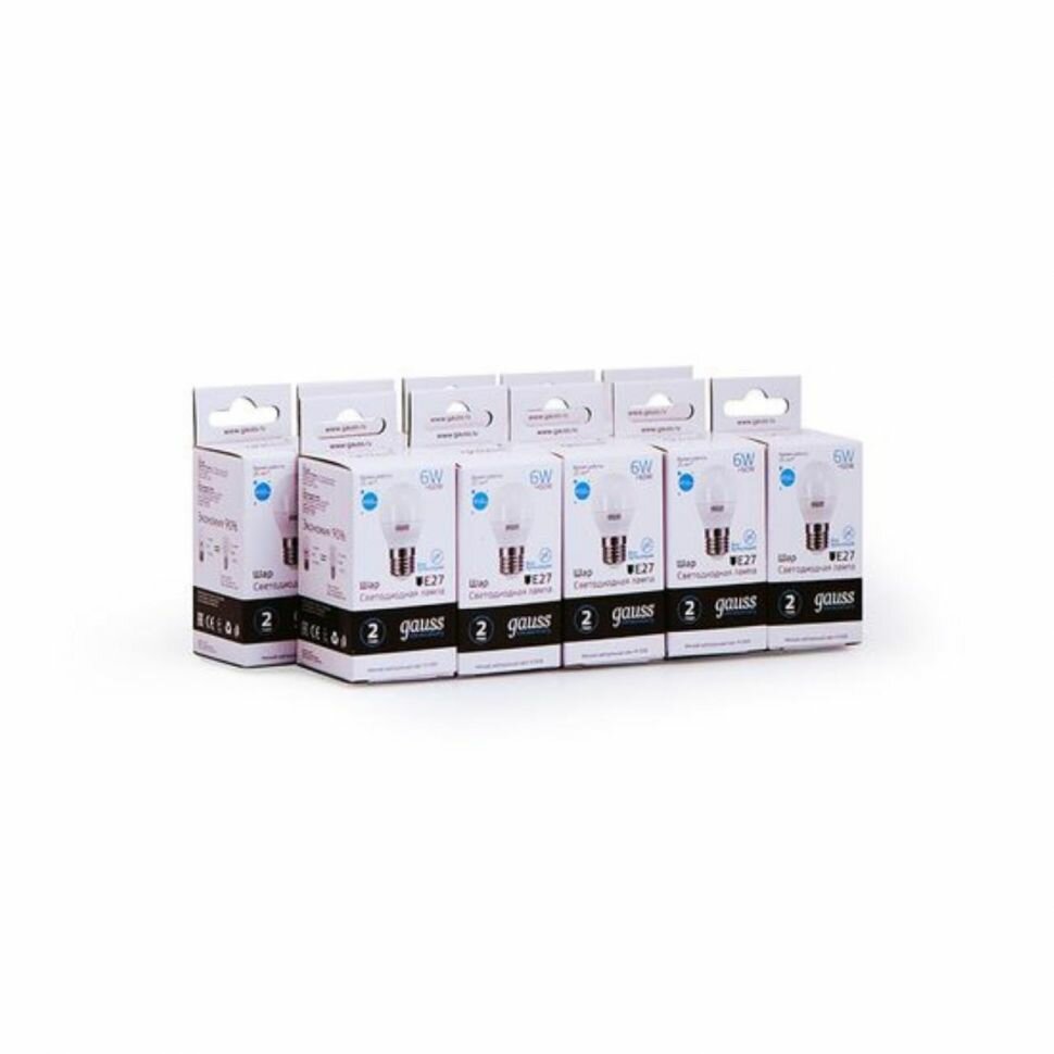 (10 шт)Лампа Gauss Elementary Шар 6W 450lm 4100K Е27 LED 1/10/100