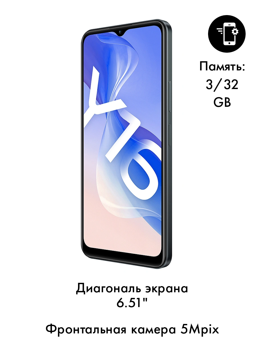 Смартфон Vivo Y16 4/64Gb/Черный/RU/