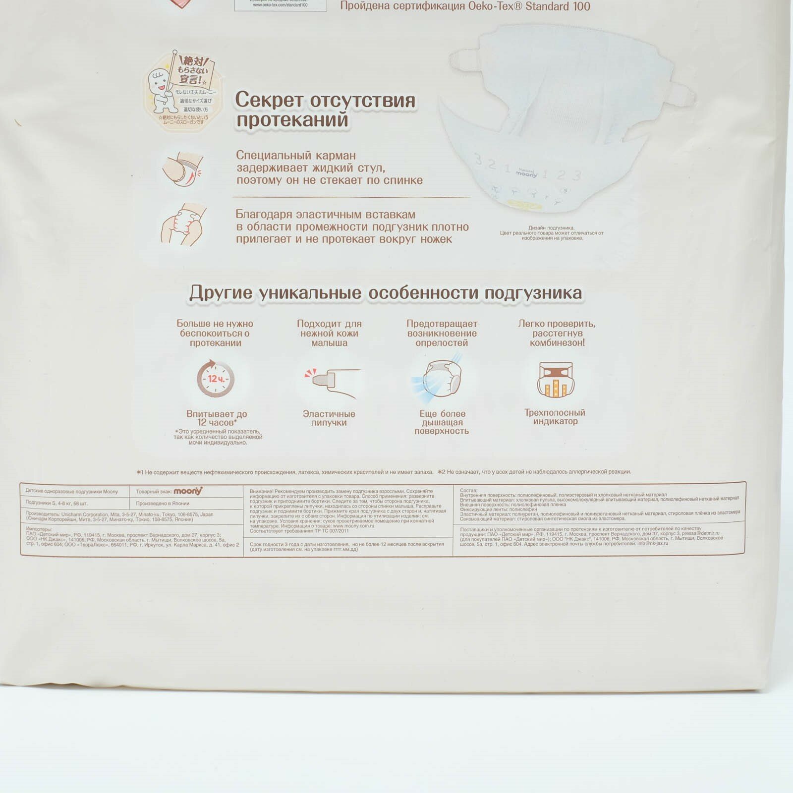 Подгузники Moony Natural S 4-8кг 58шт интересное: