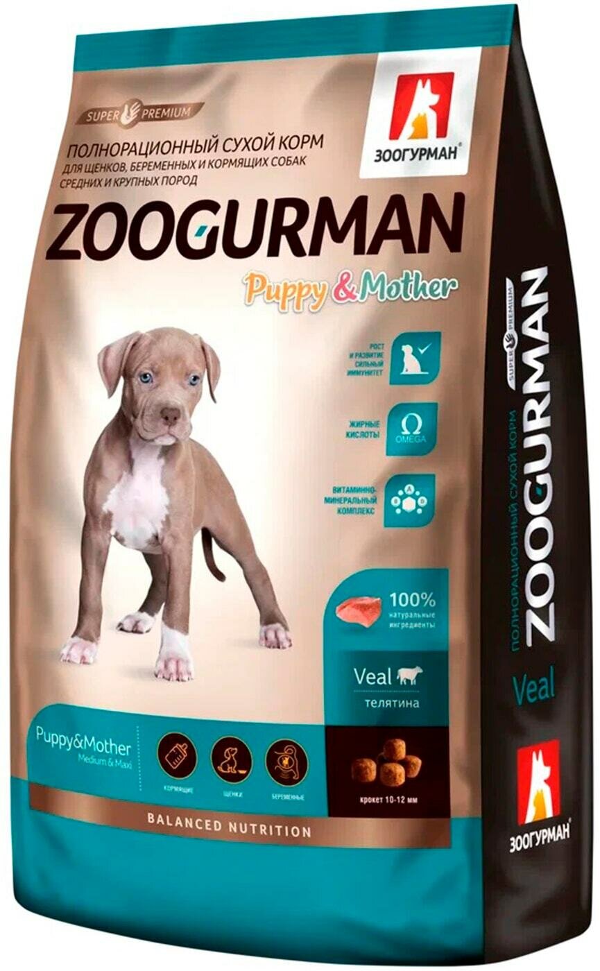 Зоогурман Zoogurman Puppy&Mother Сухой корм для щенков средних и крупных пород с Телятиной 12кг